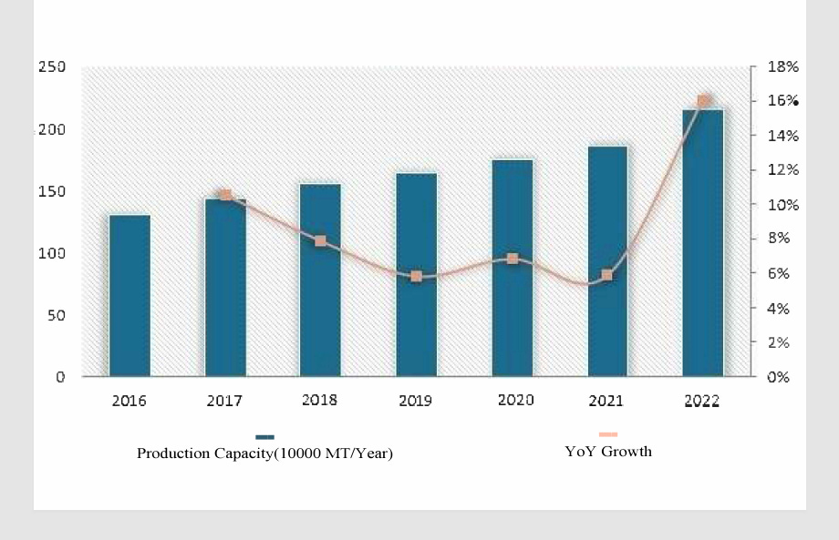 Dalam beberapa tahun terakhir, didorong oleh permintaan hilir dan kebijakan yang relevan, industri resin fenolik negara saya telah berkembang relatif stabil, dengan kapasitas produksi dan output menunjukkan tren peningkatan yang stabil. Data menunjukkan bahwa kapasitas produksi, terutama di Tiongkok Timur dan Tiongkok Tengah, akan meningkat dari 1,3 juta ton pada tahun 2016 menjadi 2,1524 juta ton pada tahun 2022. Produksi juga akan meningkat dari 1,036 juta ton pada tahun 2016 menjadi 1,535 juta ton pada tahun 2022. Saat ini, industri resin fenolik negara saya masih menghadapi fenomena "kelebihan kapasitas di tingkat bawah dan kurangnya pasokan produk kelas atas", yang menyisakan ruang yang signifikan untuk produksi domestik produk-produk kelas atas.